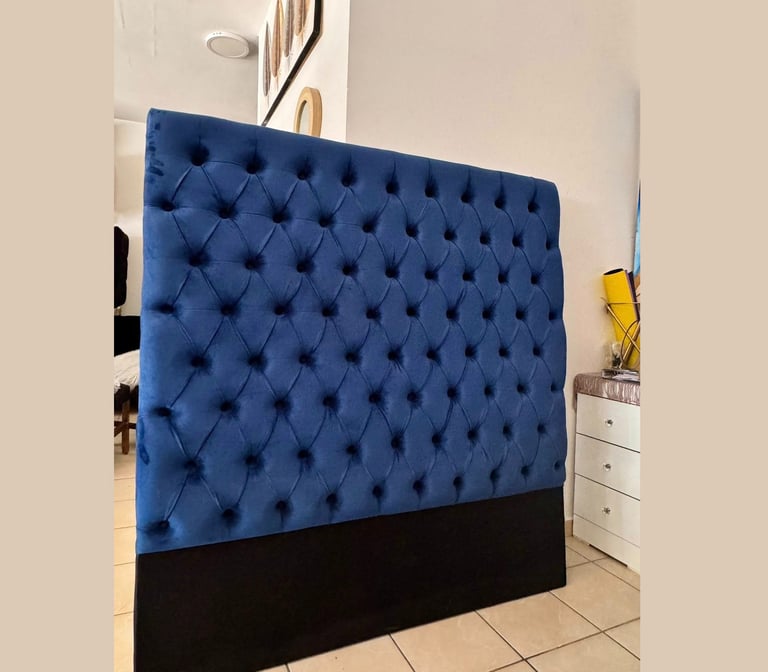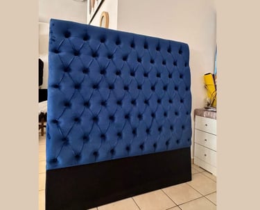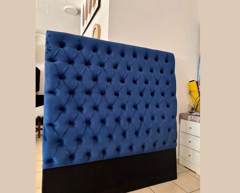 Dale a tu dormitorio un toque de modernidad y serenidad con esta cabecera azul profundo. Su diseño elegante aporta frescura y estilo, mientras que su base en negro, discreta y sobria, realza la intensidad del azul, creando un ambiente acogedor y sofisticado, ideal para descansar y disfrutar de tu espacio personal.
