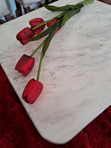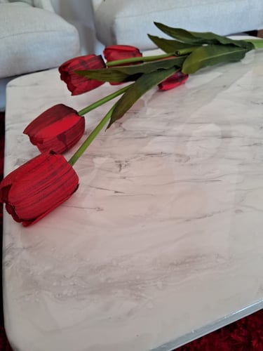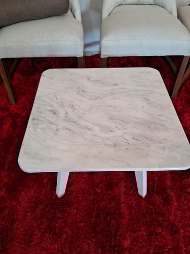 Mesa de Centro con Acabado Epóxico Tipo Mármol Blanco