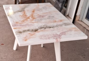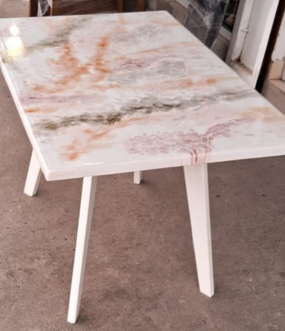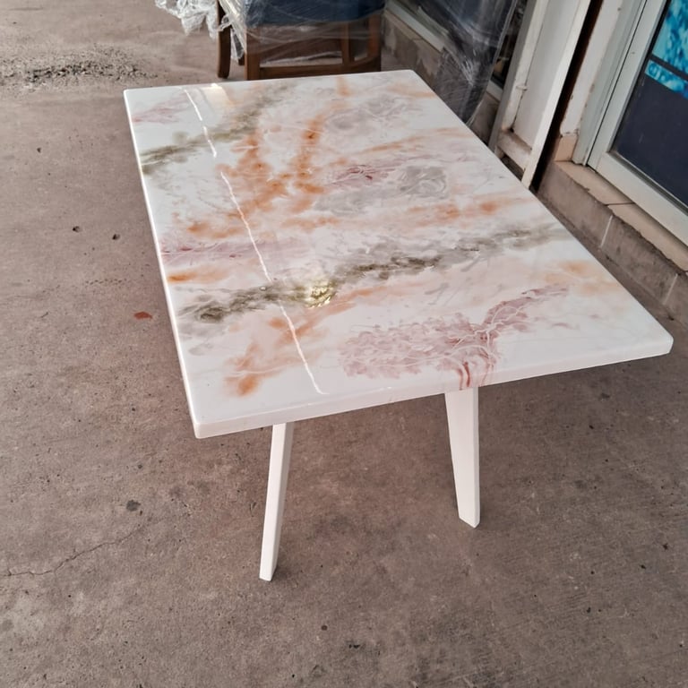 Esta sofisticada mesa de centro combina funcionalidad y arte con un diseño marmoleado único en tonos blanco, ámbar, dorado y gris. Su superficie brillante aporta un toque moderno y elegante, ideal para salas contemporáneas o clásicas. Con patas blancas minimalistas, ofrece estabilidad sin restar protagonismo a su atractivo diseño. Perfecta para transformar cualquier espacio con estilo y distinción.