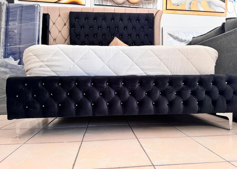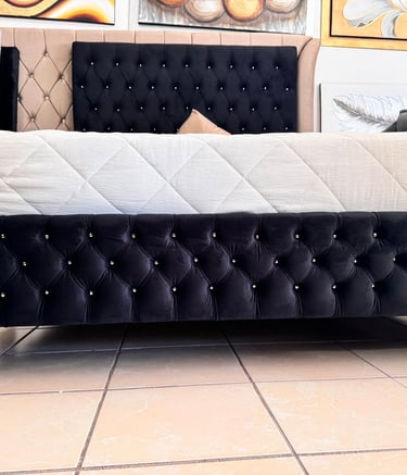 Base y Cabecera Tapizadas en Terciopelo Suave Color Azul Marino
