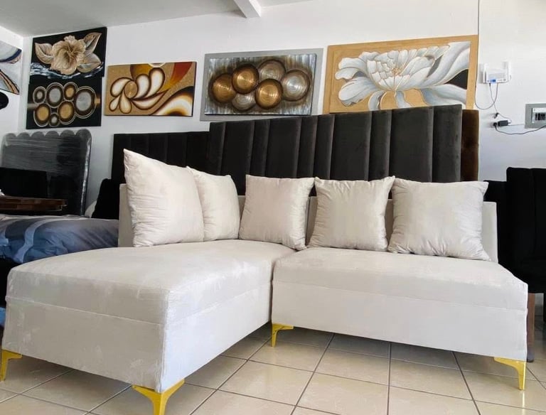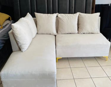 Esta sala esquinera ofrece la perfecta fusión entre estilo contemporáneo y comodidad. Su tapizado en suave tela tipo terciopelo brinda una textura sofisticada, mientras que los cojines amplios y los asientos firmes aseguran resistencia y confort a largo plazo. Gracias a su tono neutro, se integra con facilidad en cualquier ambiente, convirtiéndose en el centro ideal para realzar la armonía de tu hogar.