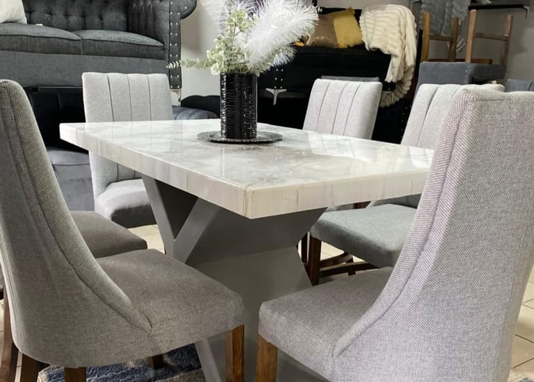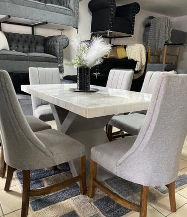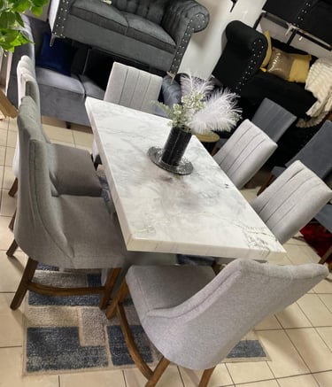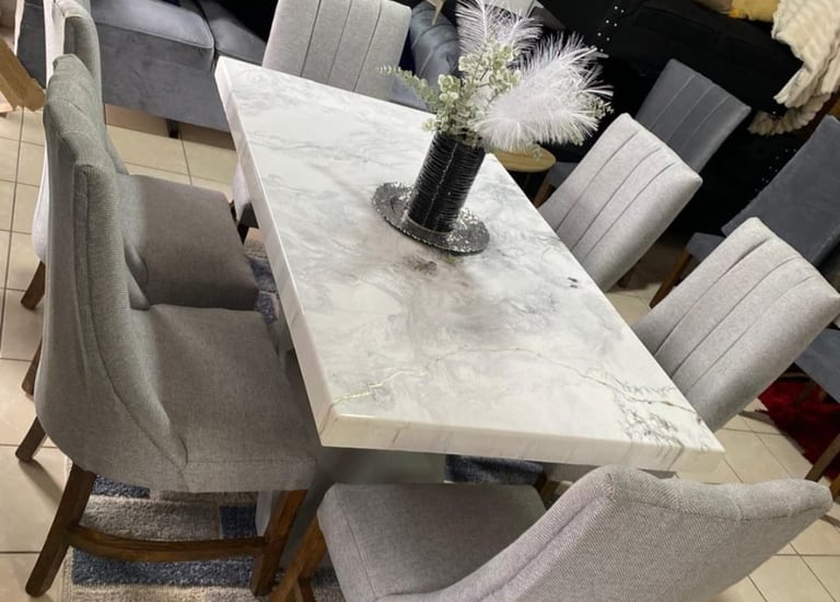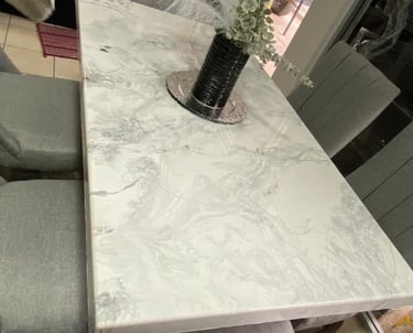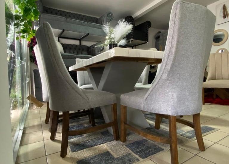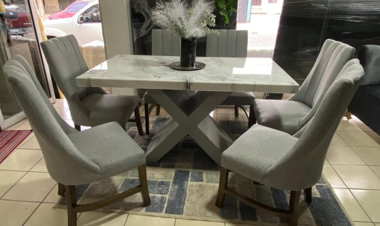 Su superficie brillante y resistente no solo garantiza durabilidad y facilidad de limpieza, sino que también aporta una apariencia sofisticada y exclusiva que transforma cualquier espacio. Cada detalle está diseñado para realzar el estilo del comedor, creando un ambiente elegante y moderno que invita a compartir momentos únicos en familia o con amigos.