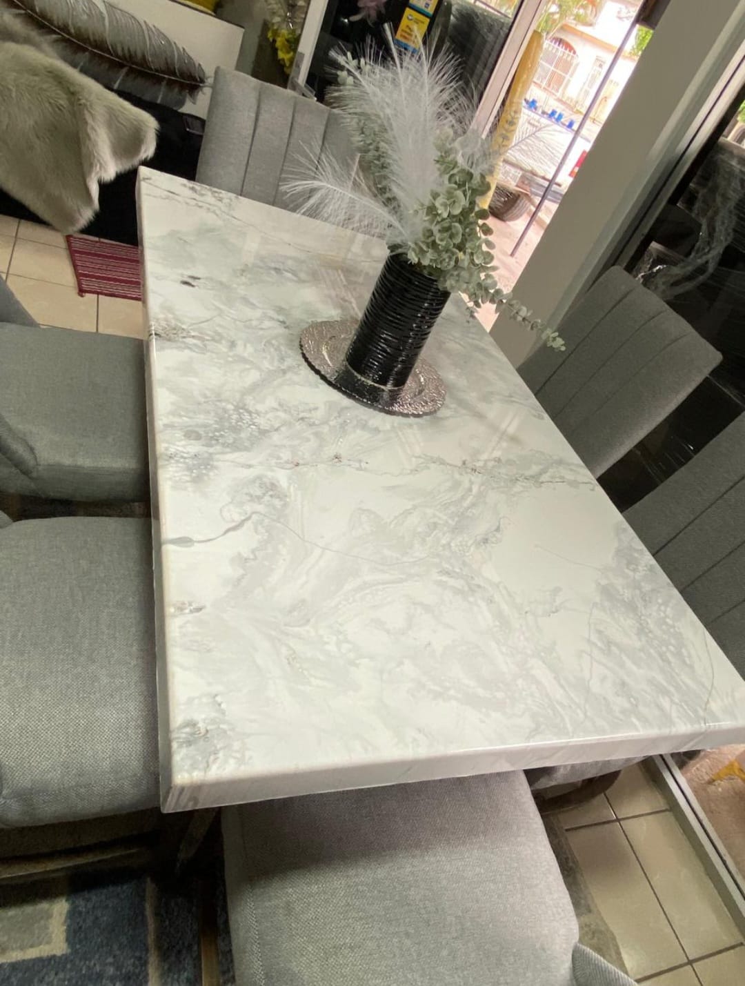 Su superficie brillante y resistente no solo garantiza durabilidad y facilidad de limpieza, sino que también aporta una apariencia sofisticada y exclusiva que transforma cualquier espacio. Cada detalle está diseñado para realzar el estilo del comedor, creando un ambiente elegante y moderno que invita a compartir momentos únicos en familia o con amigos.